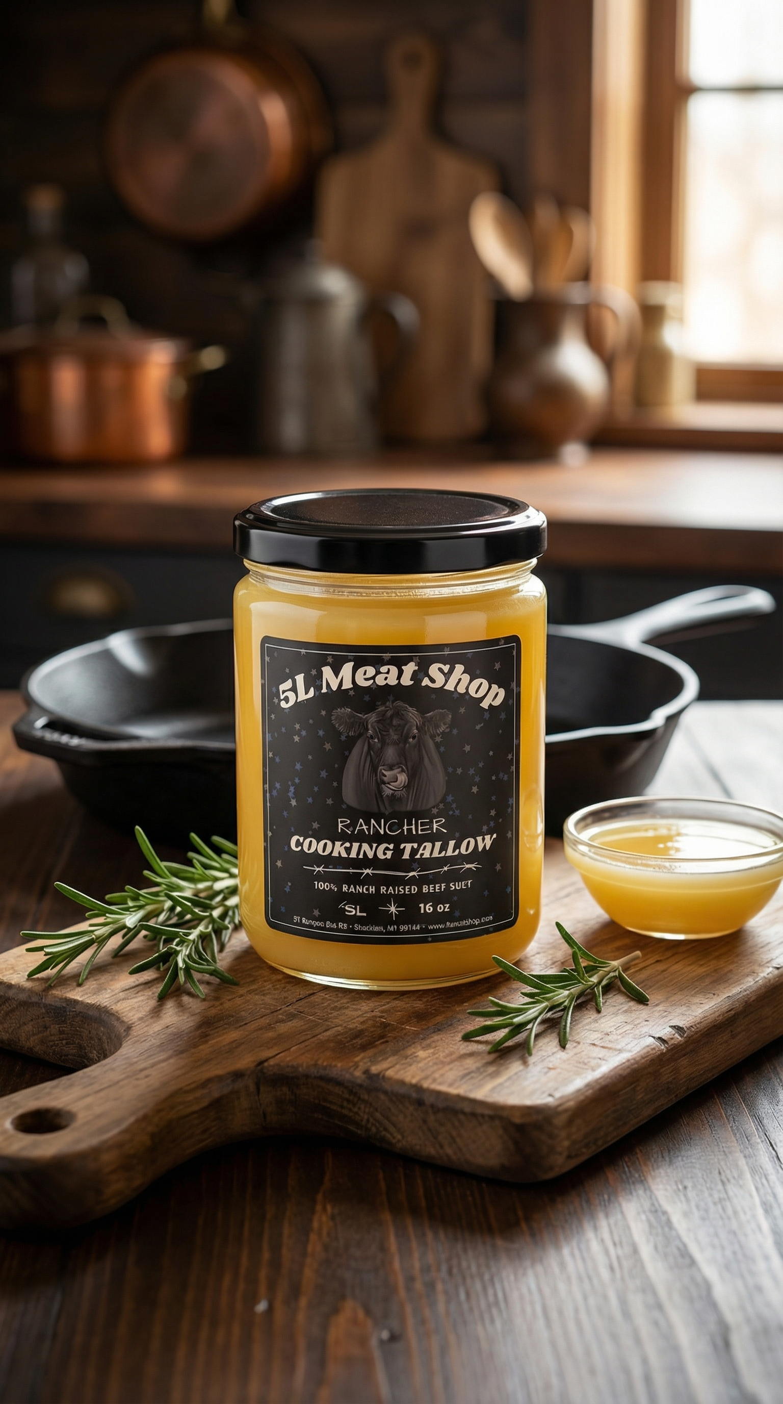 Our 16 ounce jar of cooking tallow is made from our Montana raised beef and is one of the best things you can keep by your stove. Use it in place of oils or butter for frying, searing, crisping potatoes, cooking eggs, or greasing pans. It handles high heat well and adds a subtle, rich flavor to anything you cook.